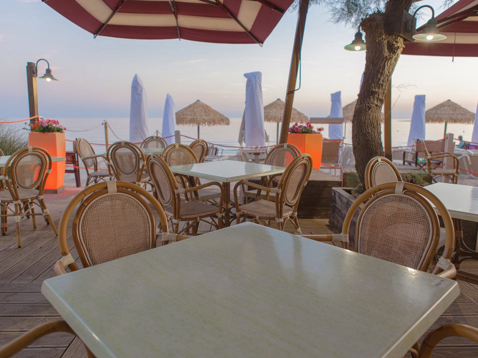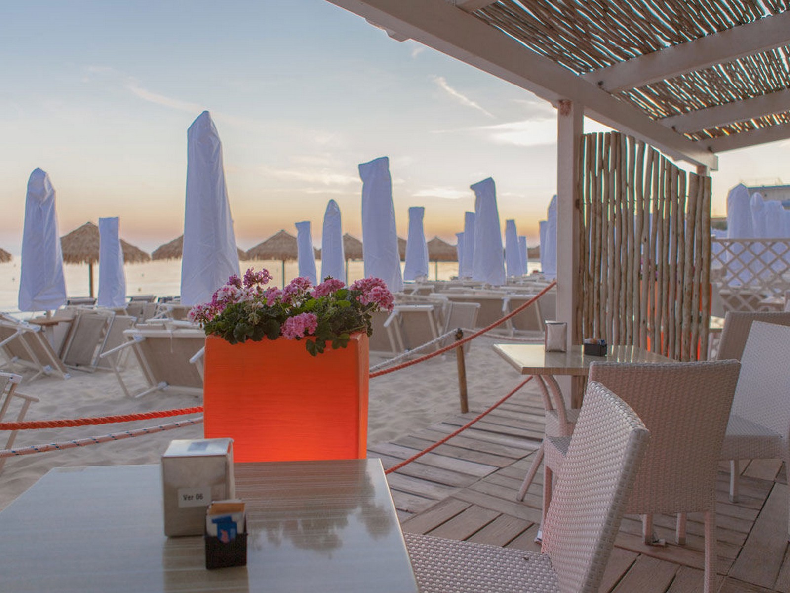 E’ presente un Beach Bar per chi volesse godere il mare senza rinunciarvi neanche un momento, presso la veranda del Bar viene offerta un’alternativa di snack veloce. Proprio sul mare, davanti ad un panorama strepitoso si possono gustare: insalate di ogni tipo, pizze, panini, le rinomate friselle, primi e secondi piatti, e vassoi di frutta di stagione. Nel pomeriggio happy hour e favolosi cocktail ammirando spettacolari tramonti.